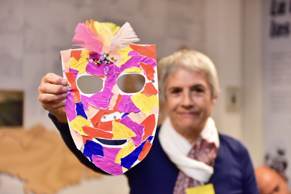Con el ingrediente del arteterapia los talleres son mucho más coloridos. De esto se encarga Claudia que, a través de mostacillas y plumas buscó que los asistentes manifestaran sus emociones y las compartieran con sus compañeros.