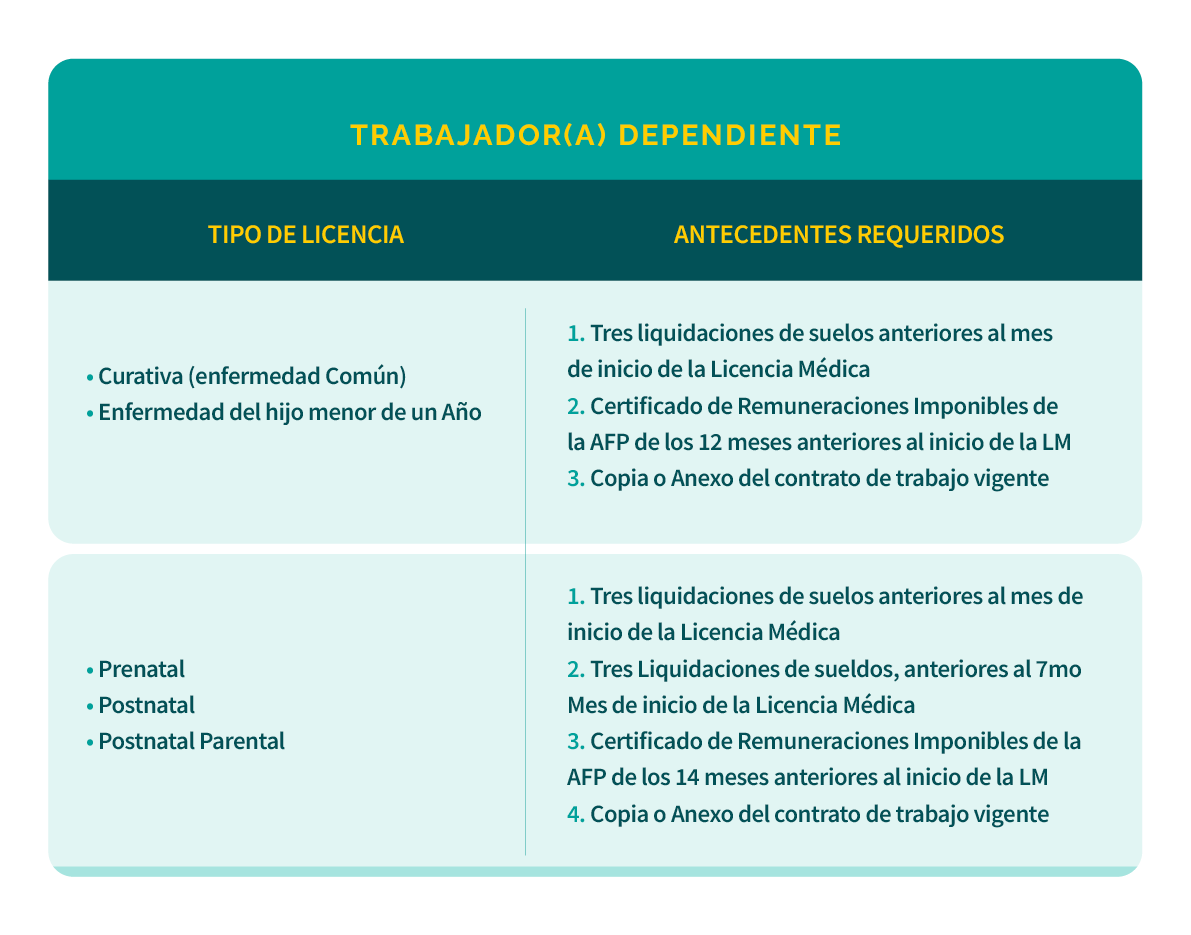 Una licencia médica Tipo 3 es emitida a todas las madres trabajadoras dependientes (contrato indefinido o contrato fijo, obra o faena, temporeras) y las trabajadoras independientes (trabajadoras a honorarios, por cuenta propia, feriantes) que estén trabajando al momento de irse de pre natal. Pueden acceder al beneficio comenzando a cotizar incluso una vez que ya están embarazadas.